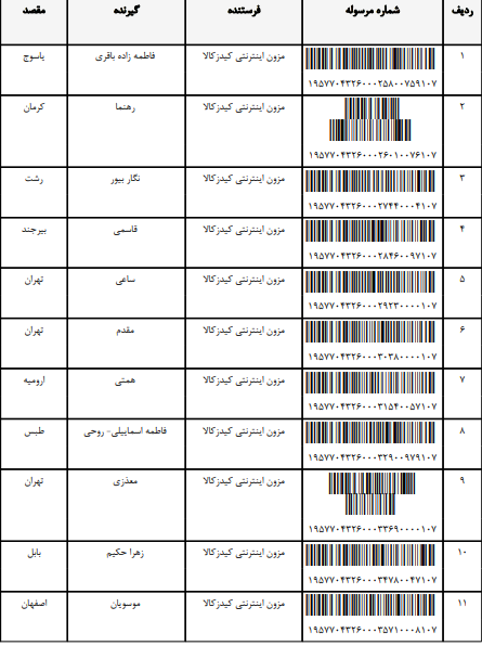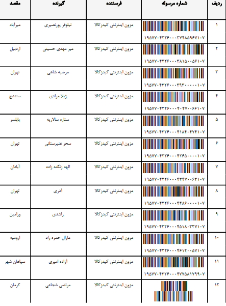 در این صفحه کدهای رهگیری مرسولات پستی و سفارشات مشتریان کیدزکالا بارگذاری میشود. لطفا با توجه به تاریخ درج شده زیر هر عکس بر روی تصویر مربوطه کلیک نموده و کد رهگیری مرسوله خود را یادداشت نمایید. کد رهگیری 24 رقمی مربوطه را میتوانید از طریق لینک زیر در سایت پست کشور وارد نموده و از وضعیت مرسوله خود مطلع شوید.